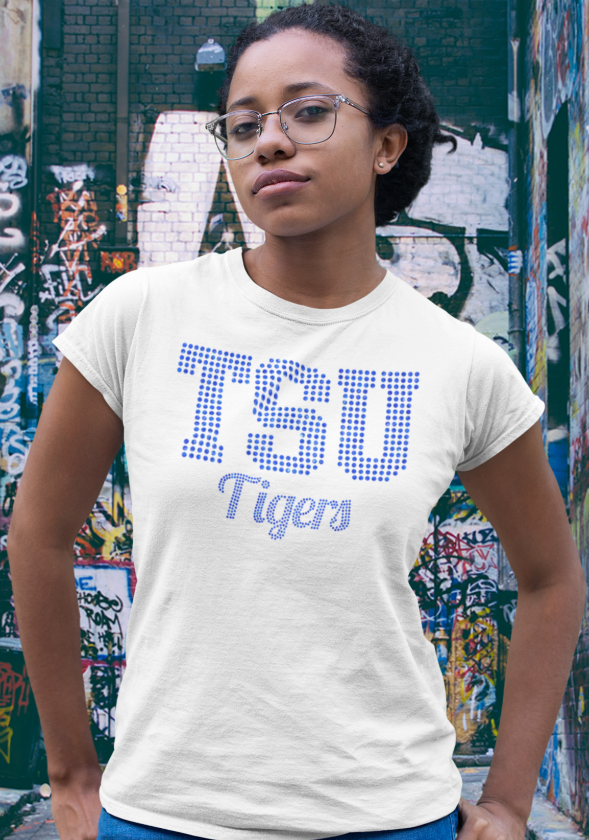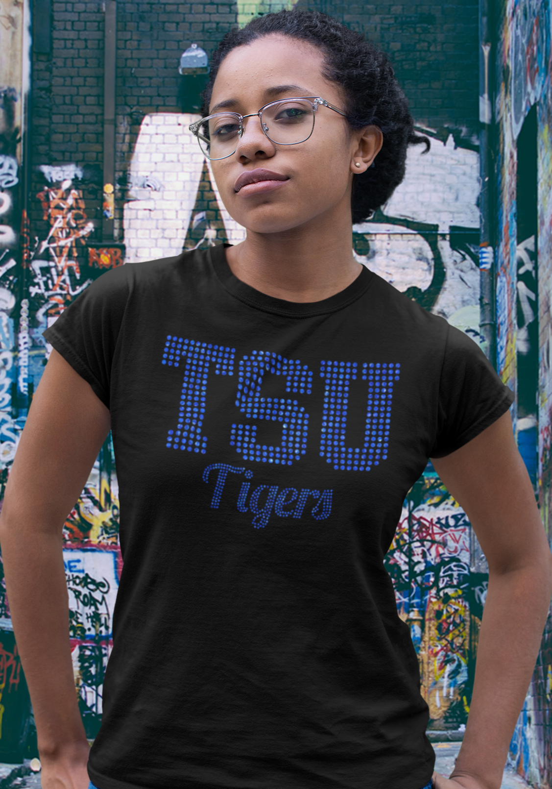 TSU Tigers Bling T-Shirt. Customize with Blue or Regular Crystal Rhinestones.